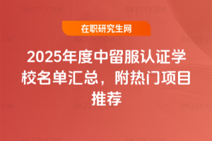 2025中留服認證學校一覽表里包括北京語言大學,深圳技術大學,中國礦業大學和北京科技大學等,這些院校歷史悠久,綜合實力強,并且采用國際先進的教學理念和方法,能明顯提高學員職場技能水平,值得報考。另外對于流程和注意事項,在職人員報考時也要提前進行充分的了解!