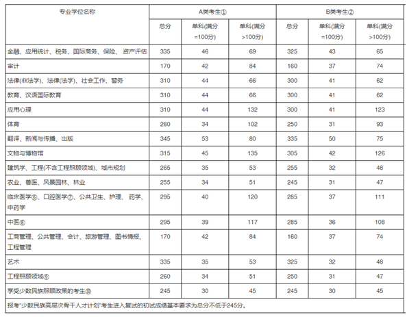 在職研究生管理類聯考MBA/MTA國家線:A線:162 39 78,B線:152 34 68。2024管理類聯考MPA國家線:A線:173 43 86,B線:163 38 76。2024管理類聯考MEM國家線:A線:176 43 86,B線:166 38 76。